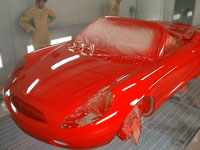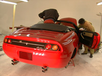 '99 晩秋 数枚のスケッチがいよいよ立体化されはじめた。 ―目標は2000年1月東京オートサロン出展。― 通常の開発ペースでは間に合わないことは全スタッフが認知していた。時間との闘いである。緊張感の強いスタートとなった。 ---------------------------------------- 開発着手から3週間、クレイモデルが完成した。 ---------------------------------------- クレイモデルが完成すると次は成形型の製作である。 ---------------------------------------- 塗装ブースでの一コマ。テーマカラーのスーパーレッドは、周囲の光で色合いが微妙に変化する。夕日や新緑などさまざまな環境でカセルタを眺める。オーナーしか知らないカセルタの表情。 走らせるだけでなく、そのたたずまいをも楽しめる車。それがカセルタである。 ---------------------------------------- 塗装も終了し東京オートサロン出展まで残りわずかとなった。 ---------------------------------------- 2000年1月 幕張メッセ カセルタの誕生である。